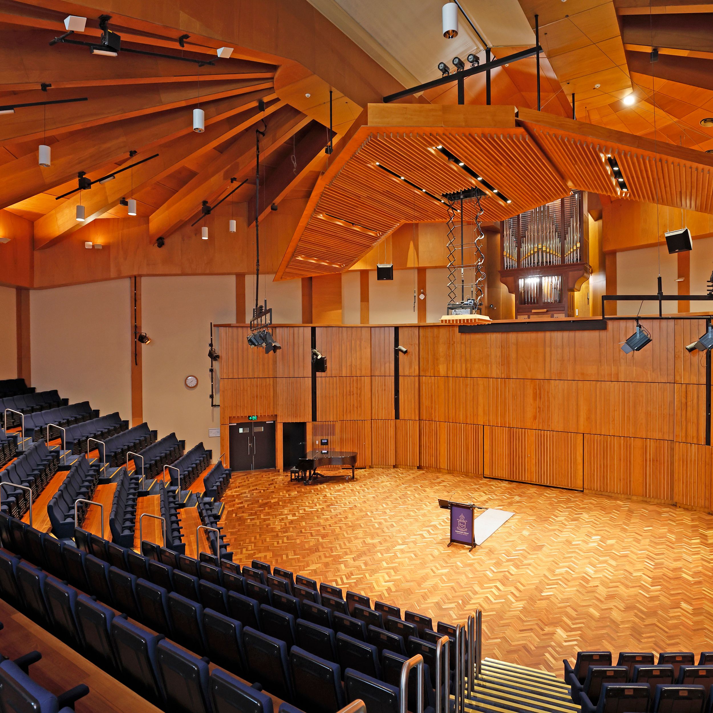 This architect designed space is used for Assemblies, Debates, Music Concerts and Theatrical Performances. In addition to the auditorium, there are a number of small and large rehearsal spaces for individuals and ensembles, music classrooms and a large foyer that caters for events and functions.