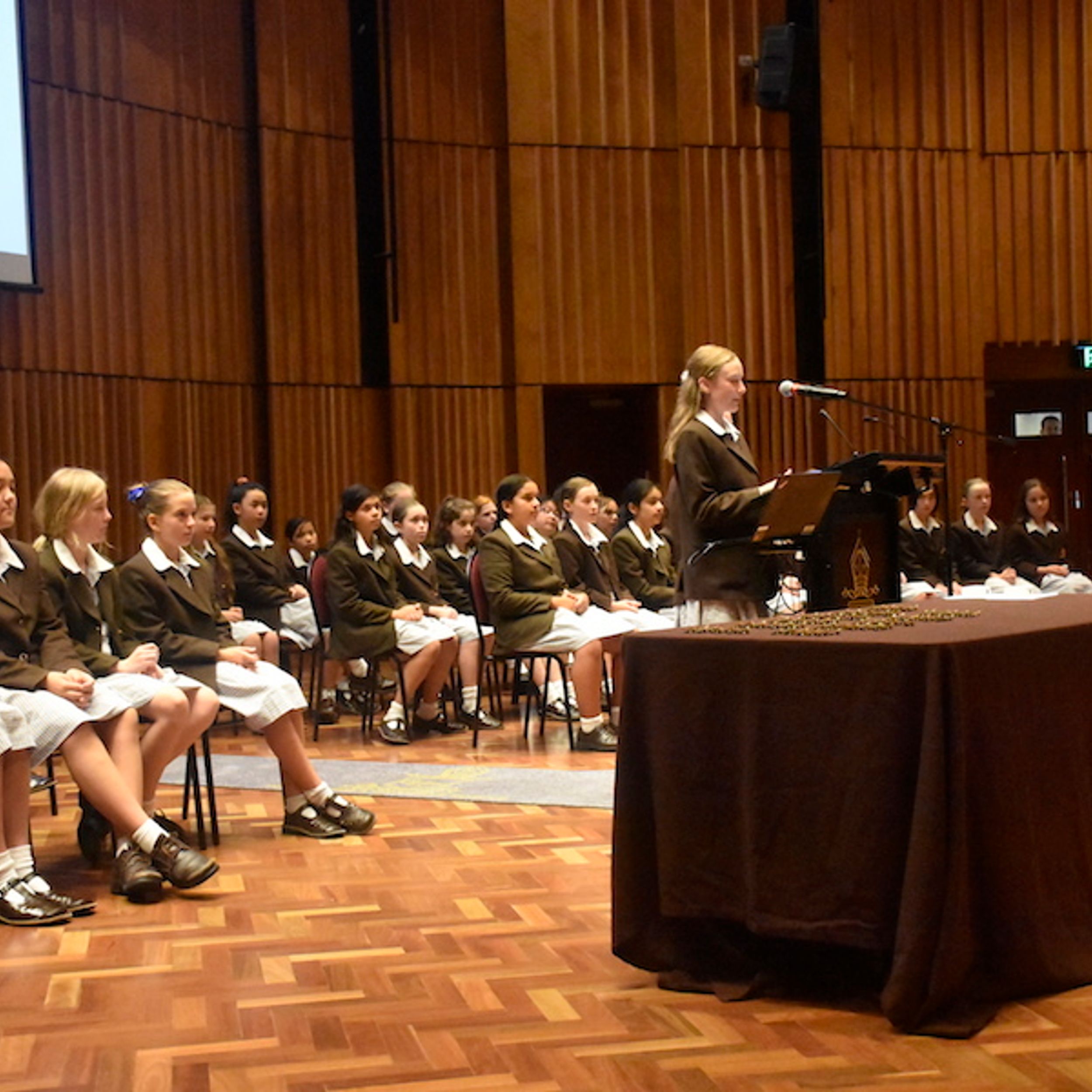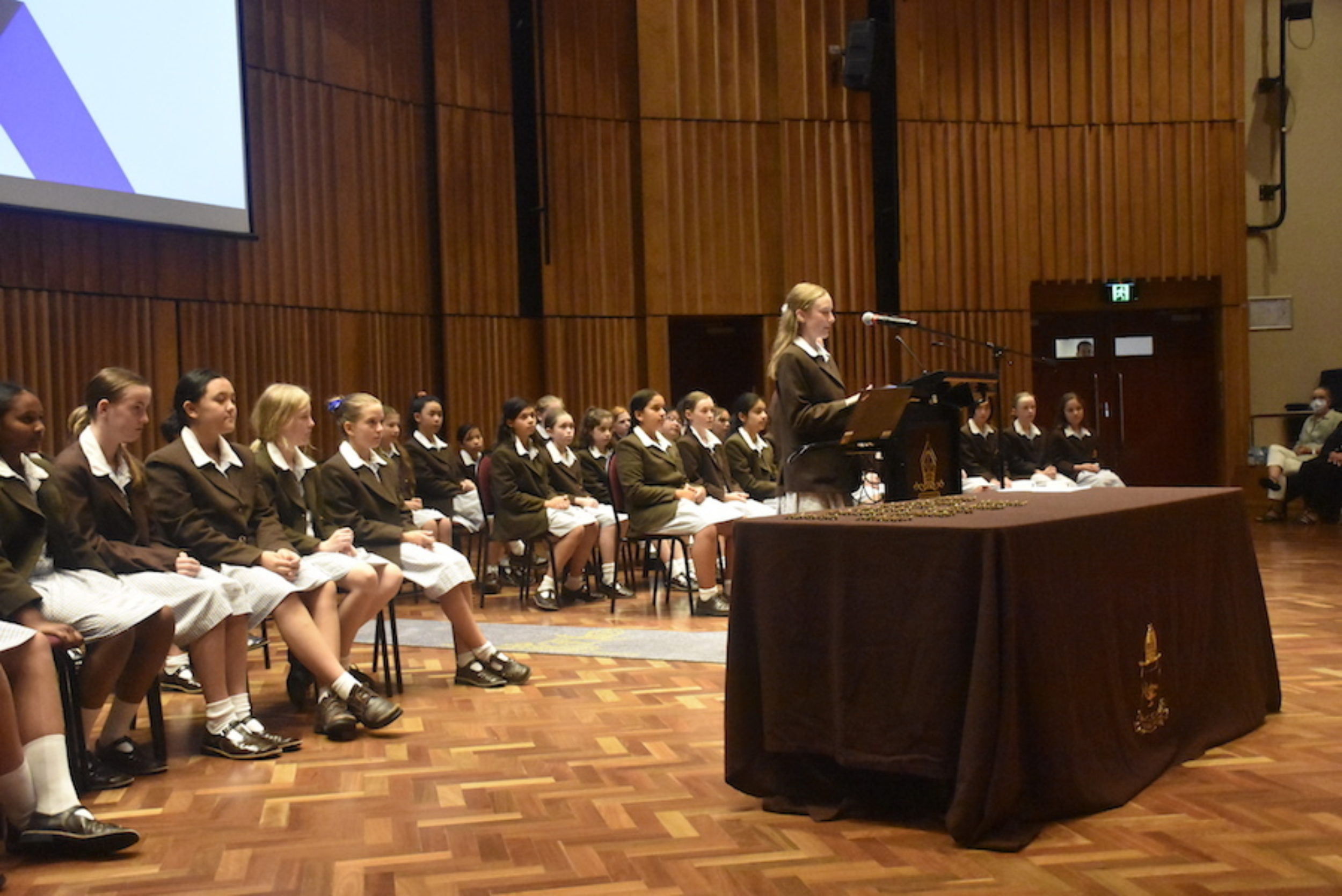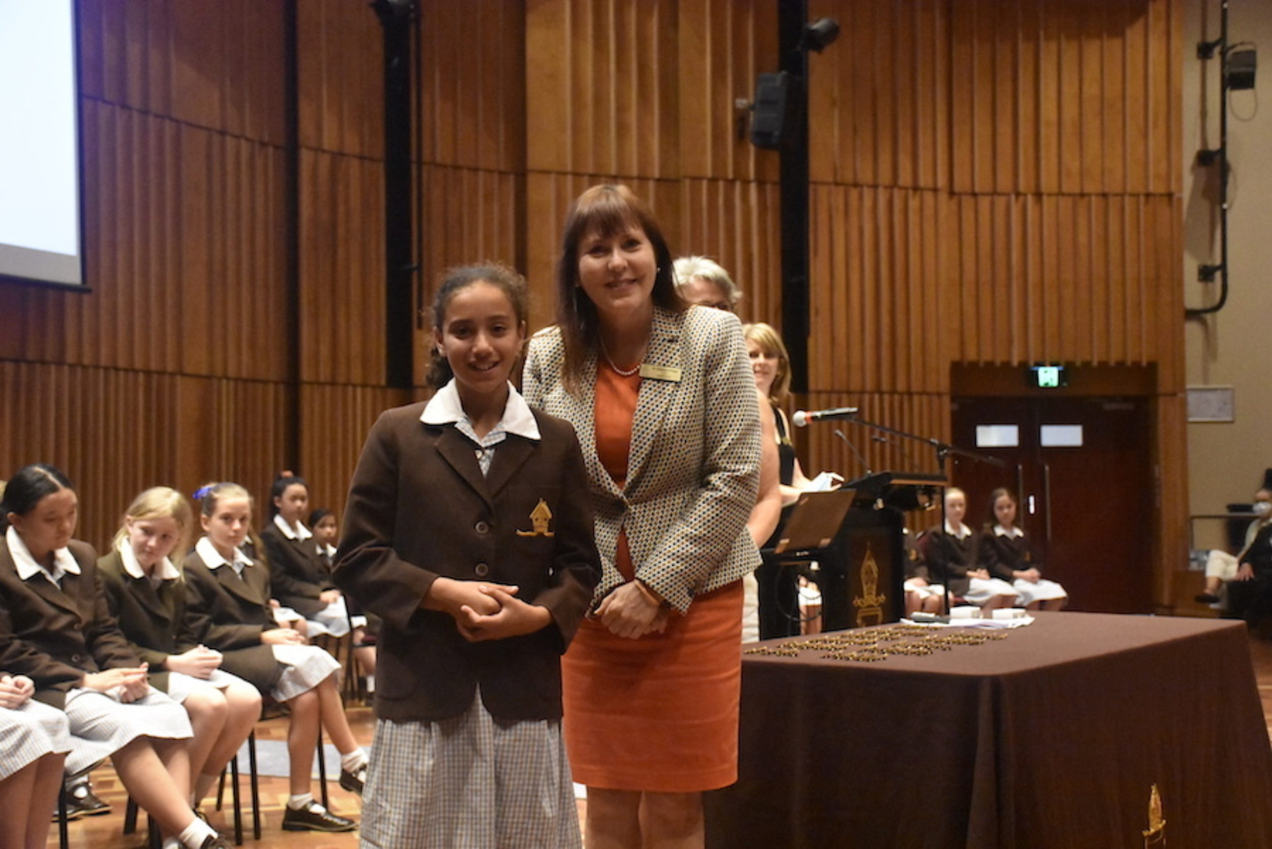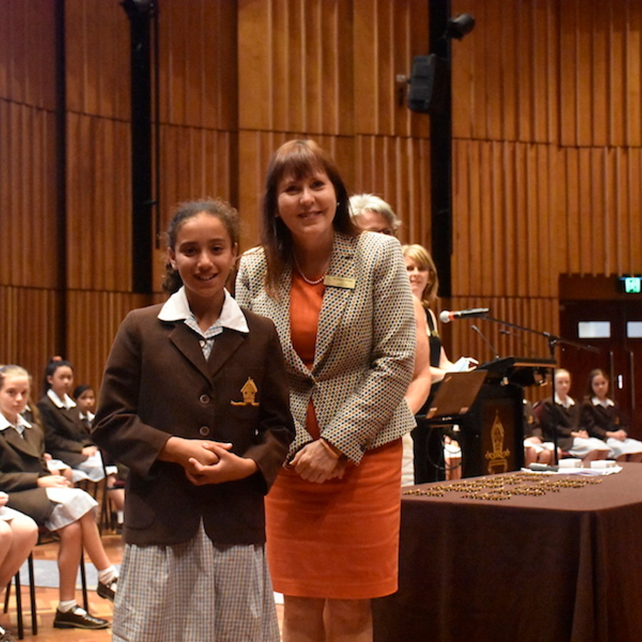 Special guests, Old Grammarians Sue Lees (1975) and Shannon Wilson (2012), were tasked with presenting badges to Co-Captains Vivienne and Milly, while Dr Priest formally inducted each of the Year 6 students into their Leadership roles.