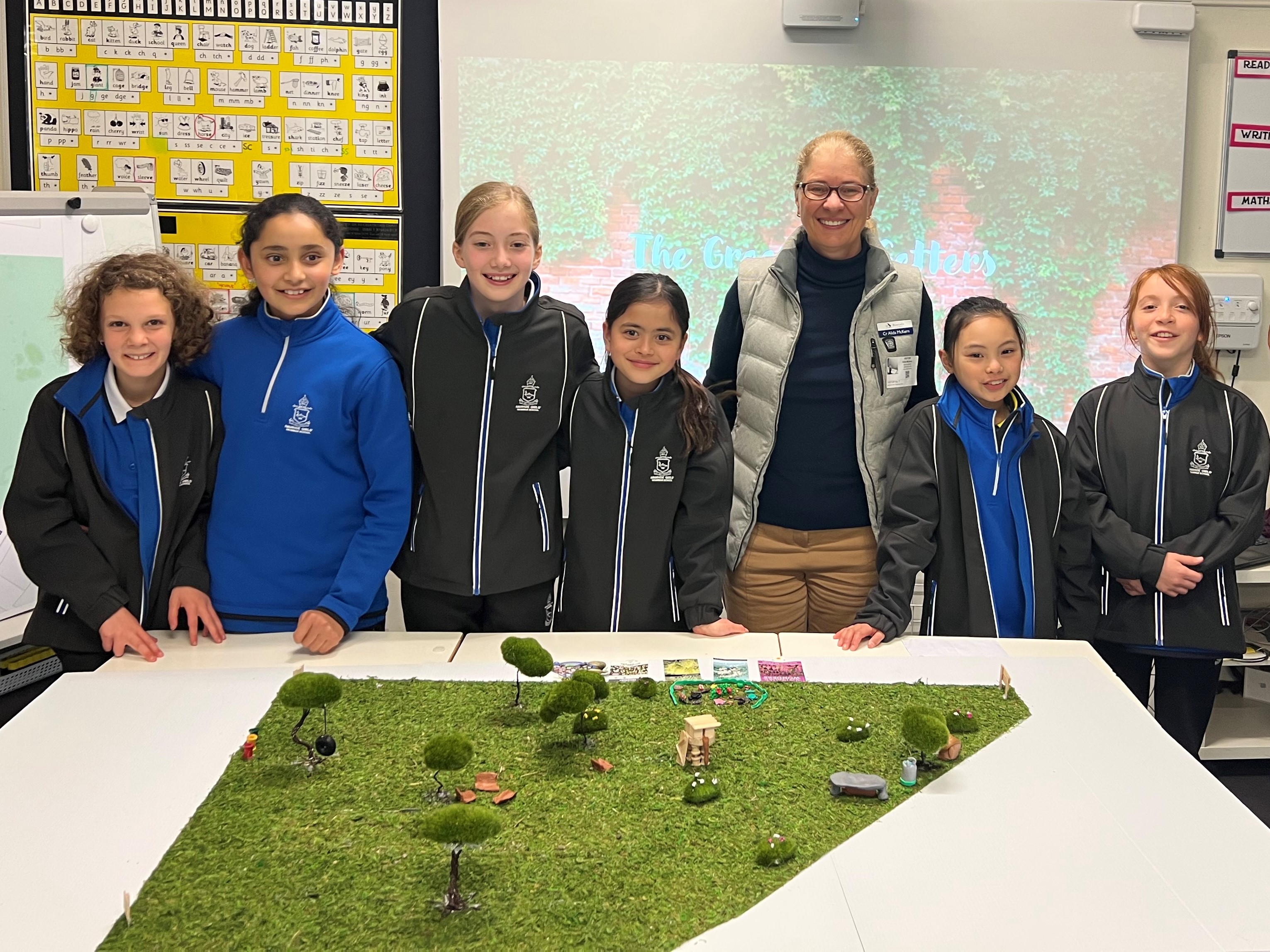 When the Green Go Getters visited the council we were all excited. We were first led to the council chambers and the room where we were having our meeting. We each presented our speeches and showed our model of the park. The council asked us lots of questions and gave us feedback that our plan was well-thought-out, cost-effective and achievable. They are interested in working with us to develop our ideas further.