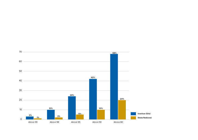- 26 students achieved an ATAR score higher than 95 (24% of the cohort)